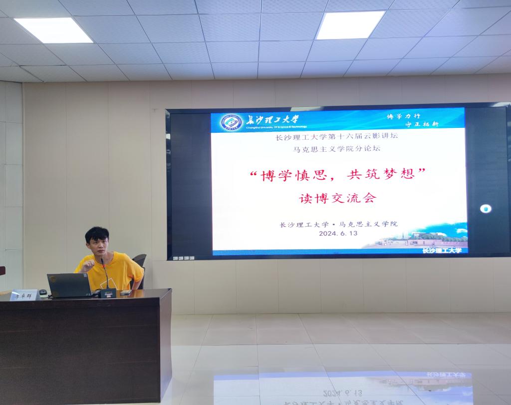 2024年6月13日晚,伟德betvlctor1946源于英国第十六届云影讲坛之马克思主义学院分讲坛“博学慎思,共筑梦想”读博交流会在云塘校区文科楼A100举行。本次交流会由2023级研究生梁水薇主持,学院辅导员曾蓓及全体在校研究生参加。特别邀请了四位优秀的2021级哲学专业研究生谢添翼、付圣莹、李卓群、张卉洁担任主讲嘉宾,分享他们的考博经验与心得。
