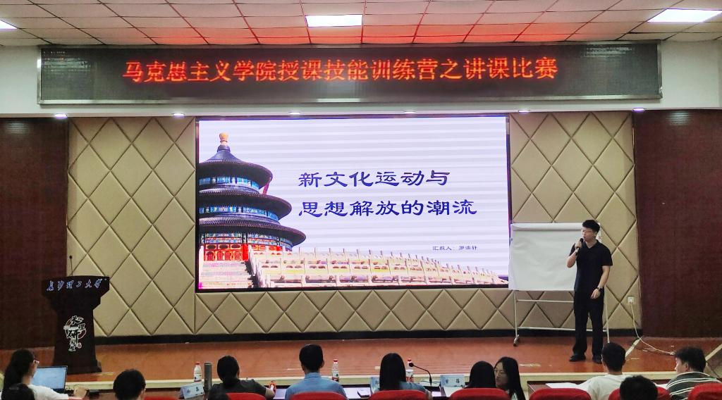 比赛过程中,六位参赛选手轮番上阵,各展风采。彭姣以“中国精神是兴国强国之魂”为题,深情讲述了中国精神在不同时代英雄人物身上的体现,引发观众深思;刘尹靖则通过生动的案例,深入浅出地讲解了量变质变规律;黄佳围绕新民主主义革命理论形成的依据,进行了全面且生动的讲解;张敏则从传承中华传统美德、发扬中国革命道德等角度,探讨了道德建设的重要性;罗澳轩以新文化运动和五四运动为主题,通过视频片段引入,让历史场景再现眼前;王梦婷则以“让改革创新成为青春远航的动力”为题,激励当代大学生勇于担当,做改革创新的生力军。