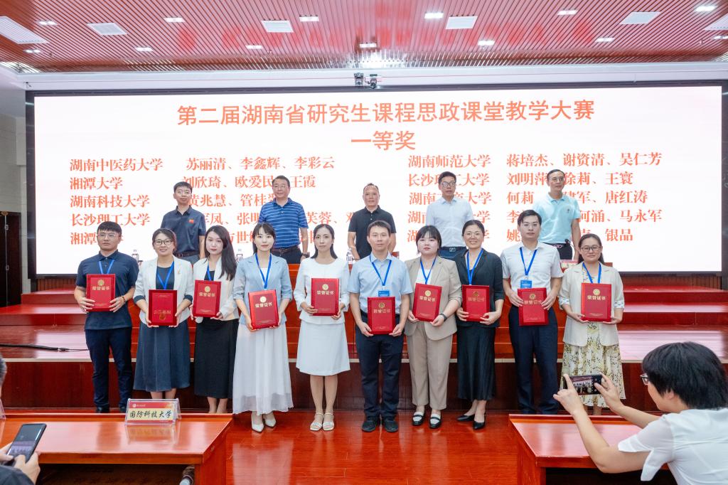 本次比赛旨在深入贯彻落实习近平总书记关于教育的重要论述和全国、全省研究生教育会议精神,促进湖南省研究生培养单位坚持“四为”服务和落实“三全育人”,全面推进研究生课程思政建设。学校自今年5月开始筹备本届比赛,由研究生院主办,我院承办复赛,共19个教师团队和个人参赛。通过邀请校内外专家进行综合评审,校内选拔赛共推荐5个教师团体参加省赛。