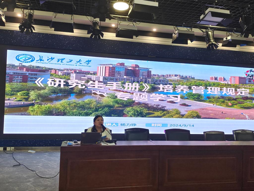 2024年9月14日上午9:00,马克思主义学院在文科楼B300报告厅召开2024级研究生学业规划与培养计划制定指导以及《研究生手册》培养管理规定专题学习。本次会议由马克思主义学院科研与研究生办主任杨力铮老师主讲,2024级全体研究生参加。