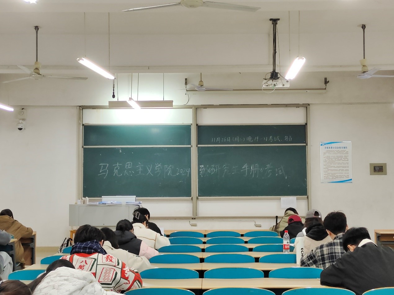 2024年11月26日晚上19:00,马克思主义学院在云塘校区文科楼B401、B403教室开展2024级新生《研究生手册》考试。