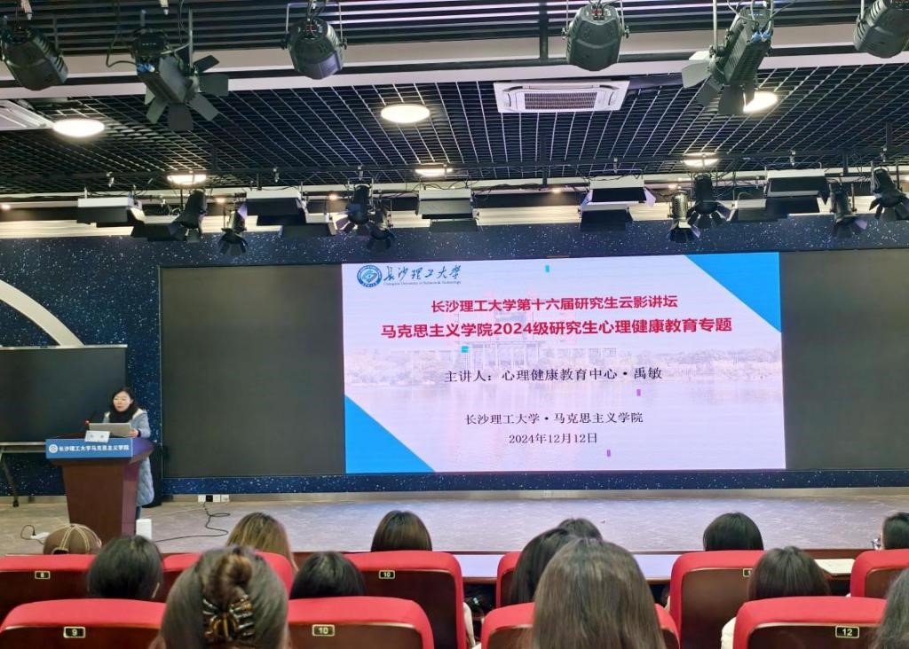 2024年12月12日下午2:30,伟德betvlctor1946源于英国马克思主义学院在云塘校区文科楼B300报告厅举办了第十六届研究生云影讲坛之2024级研究生心理健康教育专题讲座。本次讲座由马克思主义学院学工办主任曾蓓主持,心理健康教育中心禹敏主讲,2024级全体研究生参加。