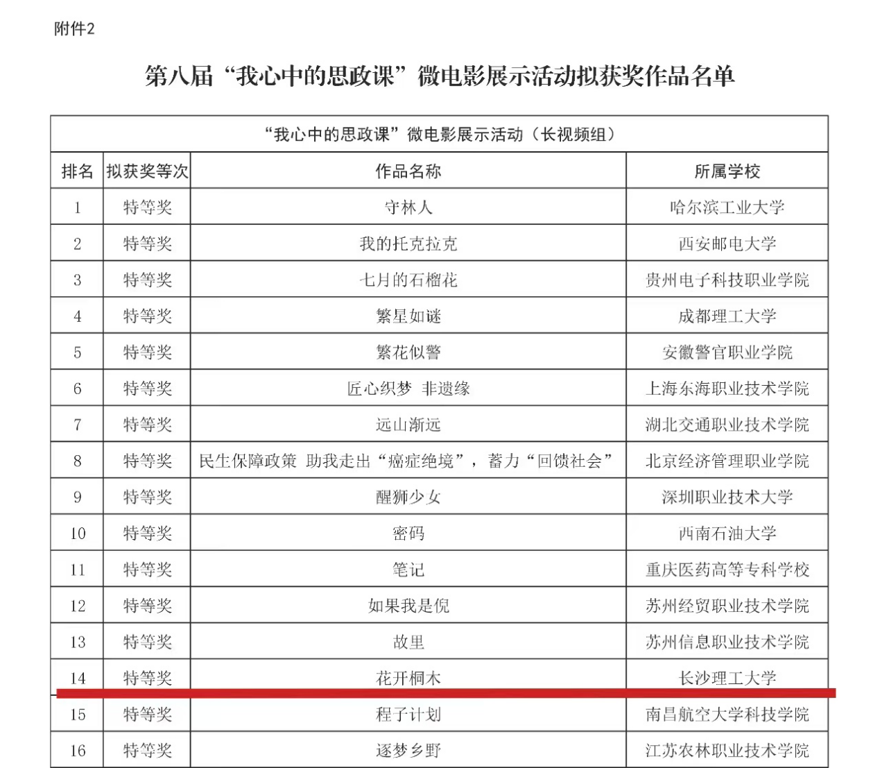 据悉,第八届全国高校大学生微电影展示活动共收到1006所高校提交的3134部微电影作品。《花开桐木》作品创作历时5个月,从思想立意、剧本创作再到艺术呈现,马克思主义学院的教师们带领学生团队深入乡村振兴一线开展实地调查研究,让学生在“行走的思政课”中学深悟透习近平新时代中国特色社会主义思想,并反复修改打磨,用青年的视角、青春的话语讲好思政课,实现了以理服人、以情动人、以文化人、以美育人的效果,体现了思想性、政治性与艺术性的高度统一。