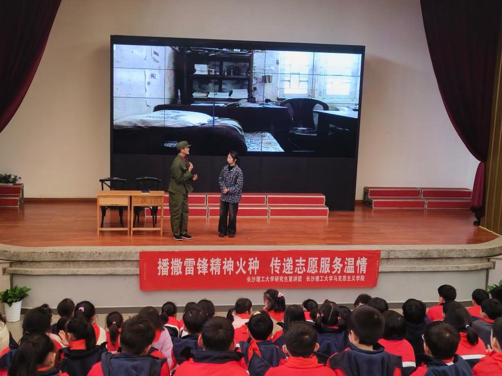 “如果你是一滴水,你是否滋润了一寸土地……”情景剧后,在场的一位小学生应邀诵读雷锋日记片段。宣讲团成员谢利强以经典语录诵读、互动问答等多种方式,带领小学生们深入了解雷锋生平和成长故事,将“雷锋精神”播种到孩子们的心田里。