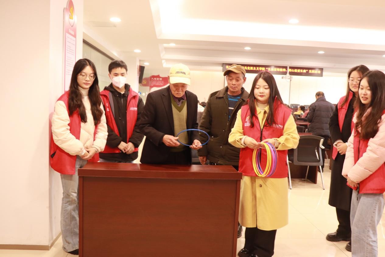 活动的高潮部分,是为社区老人开展趣味互动游戏。同学们精心准备了各式各样的日常生活必需品作为奖励,邀请社区老人们参与这场趣味十足的互动游戏。老人们兴致勃勃,笑声连连,不仅享受到了游戏的乐趣,更感受到了来自青年一代的关怀与温暖。一位参与活动的老人感慨地说:“年轻人不仅陪我们玩游戏,还关心我们的生活,和我们聊天,听我们讲过去的故事。他们的热情和耐心让我感受到了温暖,也让我看到了雷锋精神在新时代的传承。年轻人有这样的责任感和爱心,我们的社会一定会越来越好。”