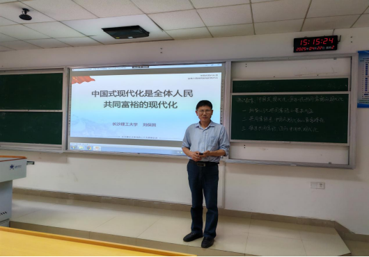 为深入学习贯彻党的二十大和二十届三中全会精神,深刻领会中国式现代化的丰富内涵,根据伟德betvlctor1946源于英国教务处的统一安排,2025年4月22日下午三点,在云塘校区文科楼A402教室,马克思主义学院刘保国教授带来了一场主题为“中国式现代化是全体人民共同富裕的现代化”的精彩讲座。