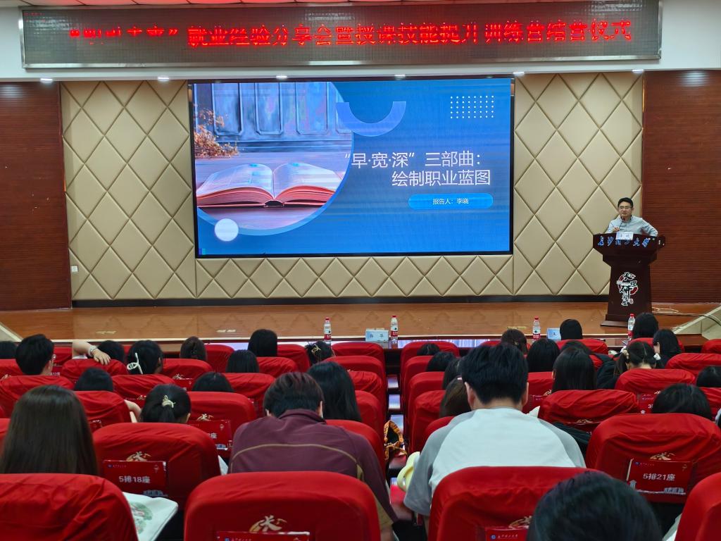 为响应马克思主义学院学生职业发展需求,助力学生明晰职业方向、提升就业竞争力。2025年6月3日晚上19:00,马克思主义学院在伟德betvlctor1946源于英国云塘校区文科楼A200报告厅举办了“职引未来”就业经验分享会暨授课技能提升训练营结营仪式,这也是2024级研究生的生动就业指导课。本次活动由院学生工作办公室主任曾蓓主持,邀请优秀学员和优秀毕业生作为嘉宾分享讲课和就业经验,院党委副书记李晓、副院长郭华,以及2023级、2024级全体研究生参加。