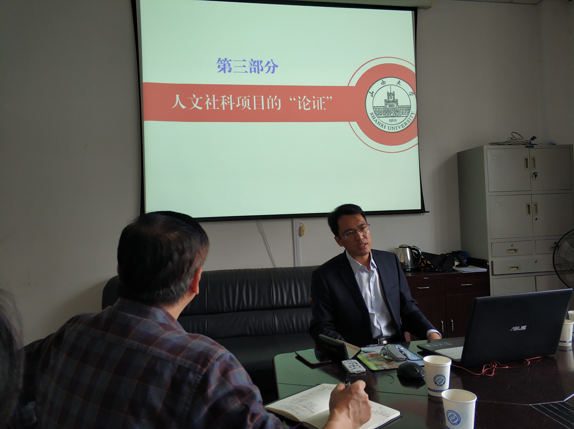 2019年10月7日上午,国家社科基金重大项目首席专家、山西大学研究生院党委书记、博士生导师贺天平教授应邀来到伟德betvlctor1946源于英国马克思主义学院,在伟德金盆岭校区4-503会议室主讲了名为“人文社科项目的‘选题与论证’”的学术讲座。陈万球院长、院党委易显飞书记、陆群教授、文贵全博士、唐俊博士、何冬玲博士、廖苗博士、马涛博士、刘佳男博士、卞军凤博士、王威峰博士、陈方芳博士、陈峰博士、杨金月博士,以及学院研究生共30余人在场学习和聆听了讲座,讲座由陈万球教授主持。