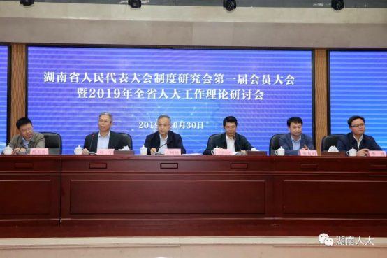 10月30日上午,湖南省人民代表大会制度研究会第一届会员大会暨2019年全省人大工作理论研讨会在长沙召开,省人大常委会党组副书记、副主任黄关春、王柯敏,秘书长胡伯俊出席会议。湖南省人民代表大会制度研究会第一届会员大会举行。会议表决通过了研究会章程、理事名单和会长、副会长、秘书长,标志着湖南省人民代表大会制度研究会正式成立。根据表决结果,省人大常委会党组副书记、副主任王柯敏当选为会长;省人大常委会研究室副主任王向前、杨志勇当选为副会长;研究室综合处处长戴志华当选为秘书长,兼法定代表人。重新设立湖南省人民代表大会制度研究会 是新时代深入学习宣传贯彻习近平总书记关于坚持和完善人民代表大会制度重要思想的重大部署;是省十三届人大常委会党组加强全省人大系统思想理论建设的重要举措;是对标全国人大、对接中国人大制度理论研究会的一项重要工作。王柯敏指出,要建设一个对党绝对忠诚、坚定人大制度自信的红色智库;要建设一个扎根人大制度研究、助推人大工作创新的专业智库;要建设一个服务全省大局、善于经世致用的湖湘智库;要建设一个广泛交流合作、凝聚各方智慧的开放智库。伟德特色智库“新时代中国特色社会主义故事传播中心”承担的省领导交办课题“党的领导、人民当家作主、依法治国有机统一的理论与实践研究”的阶段性成果在大会上进行了交流。我院陈万球院长、余乃忠教授作为智库学者入选湖南省人民代表大会制度研究会会员。研究会要求全体会员把握政治性、增强针对性、提升创造性、注重实效性,充分发挥研究会的平台、载体作用,努力开创新时代全省人大制度理论和实践研究新局面。