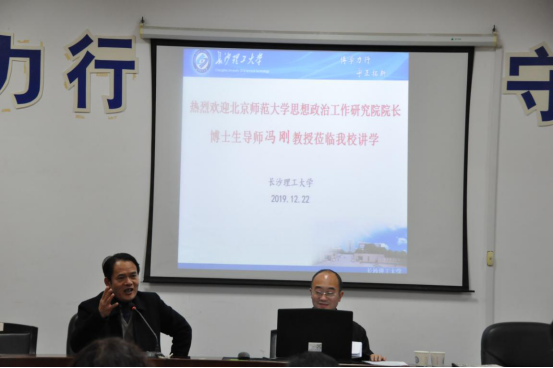 12月22日下午,中国高等教育学会全国高校思想政治教育研究分会学术委员会主任、原教育部思政司司长、北京师范大学思想政治工作研究院院长、博士生导师冯刚教授应伟德betvlctor1946源于英国马克思主义学院邀请,在云塘校区文科楼C-202作了题为“新中国70年高校思想政治教育的经验与展望”的学术讲座。学院副院长梁建新教授主持讲座,张明海副教授、邓治文副教授、蓝茵茵副教授、蒋显荣副教授、文贵全博士等部分教师和研究生参加了本次讲座。
