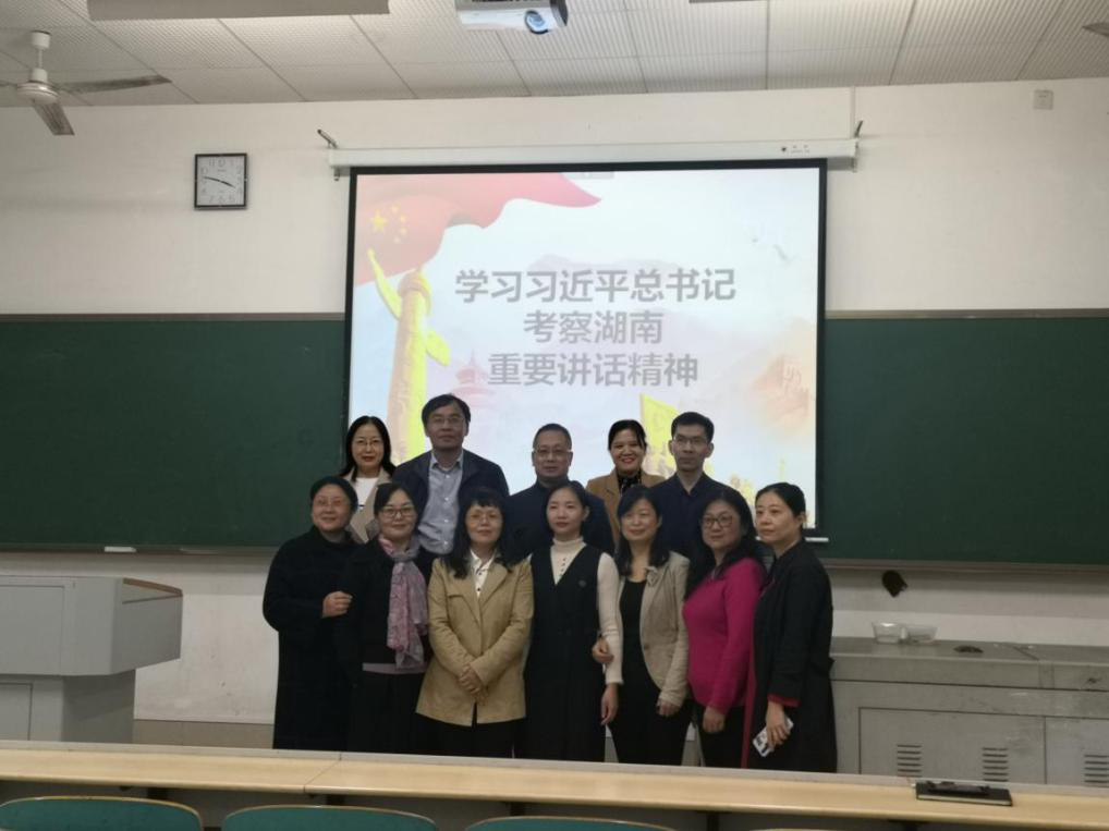 10月15日下午,中国化系党支部在云塘校区综合教学楼B106教室,进行专题学习习近平总书记在湖南考察时的系列重要讲话指示精神。本次专题学习由党支部书记黄娟主持,12名党员参加。