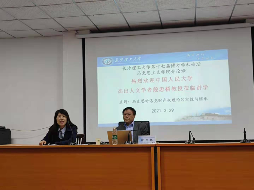 3月29日晚7时,中国人民大学首批杰出人文学者、国务院政府特殊津贴专家、博士生导师段忠桥教授来到金盆岭校区2教101,为伟德第十七届博力学术论坛马克思主义学院分论坛主讲了“马克思对洛克财产权理论的定性与继承”的这一主题。校党政办周艳红主任,马克思主义学院傅如良教授、余乃忠教授、文贵全博士等教师与学院2020级全体研究生听取了讲座,讲座由李雨燕副院长主持。