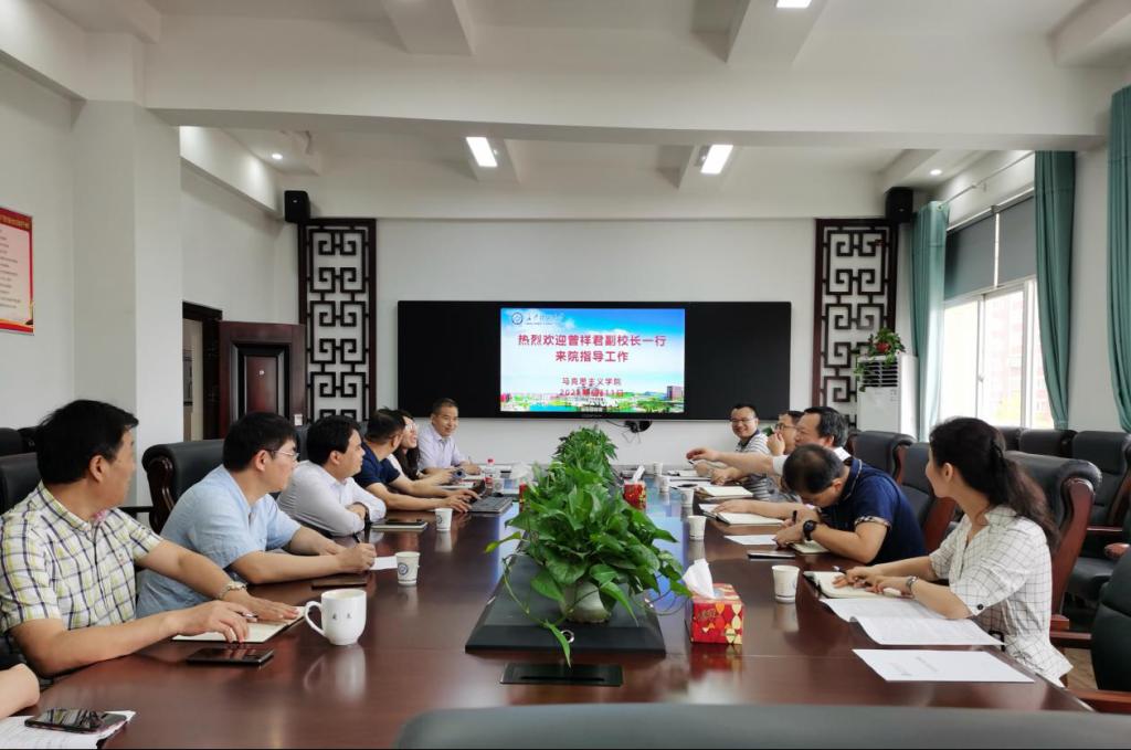 2021年6月11日上午,曾祥君副校长、科研部王进部长、社科处刘建江处长、成果转化服务中心刘亚辉副处长、社科处胡滨老师一行五人来到马克思主义学院指导学院工作。我院易显飞书记、陈万球院长、张明海副院长、李雨燕副院长、郭华副院长、周展组织员,教授委员会余乃忠主任等参加了本次会议。