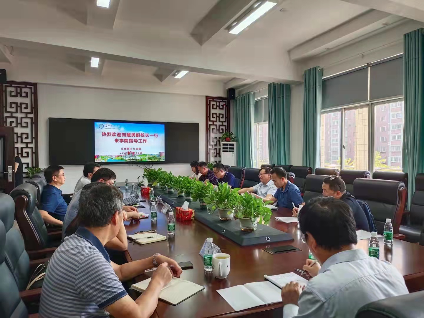 9月18日上午,副校长刘建民带领学校国资处处长侯伟建、副处长邓应军,图书馆党总支书记夏智勇、馆长陈寿祺,信息化办副主任王朗一行来到马克思主义学院,调研指导工作。学院领导班子成员及教授委员会主任、办公室主任、工会主席、学科建设办主任等参加,会议由学院党委书记易显飞主持。