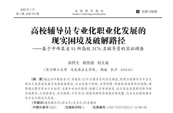 期刊:《思想教育研究》(CSSCI)2022年第1期
