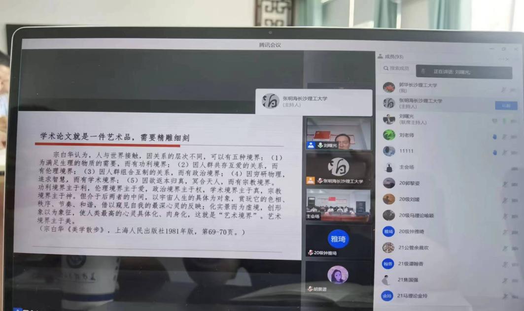 2022年7月29日上午,全国高等学校文科学报研究会理事长、《北京大学学报(哲学社会科学版)》常务副主编刘曙光编审应邀来到马克思主义学院,在伟德云塘校区文科楼六楼学院会议室作了题为“核心期刊编辑与高水平学术论文写作”的学术讲座。讲座现场由学院院长张明海教授主持。学校社科处、期刊社的领导和老师、马克思主义学院师生共计150余人通过线上线下的方式参加了讲座。