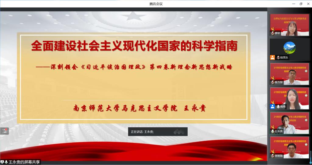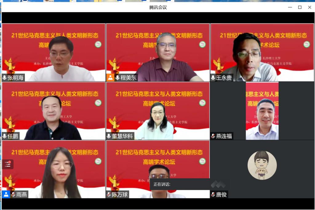 为深入学习《习近平谈治国理政》第四卷以及领会习近平总书记 2022 年 7月 26 日在省部级主要领导干部专题研讨班上的重要讲话,伟德betvlctor1946源于英国马克思主义学院于2022年9月6日下午开展了“人类文明新形态与21世纪马克思主义”高端学术论坛(四)。本次论坛采用线上线下相结合的方式,论坛由马克思主义学院副院长李雨燕主持,马克思主义学院党委书记陈万球、院长张明海以及马克思主义学院全体师生共计两百余人参加了本次论坛。