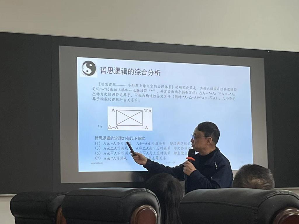 2022年11月24日上午十点,中国社会科学院哲学所研究员、中国逻辑学会名誉会长邹崇理教授莅临我院,在云塘校区文科楼B-602会议室作了题为“关于逻辑矛盾和辩证矛盾的思考”的学术讲座。马克思主义学院陈万球书记主持本次讲座,李雨燕副院长、郭华副院长、董艾辉老师、蒋显荣老师等学院部分教师及研究生共同参加了本次活动。