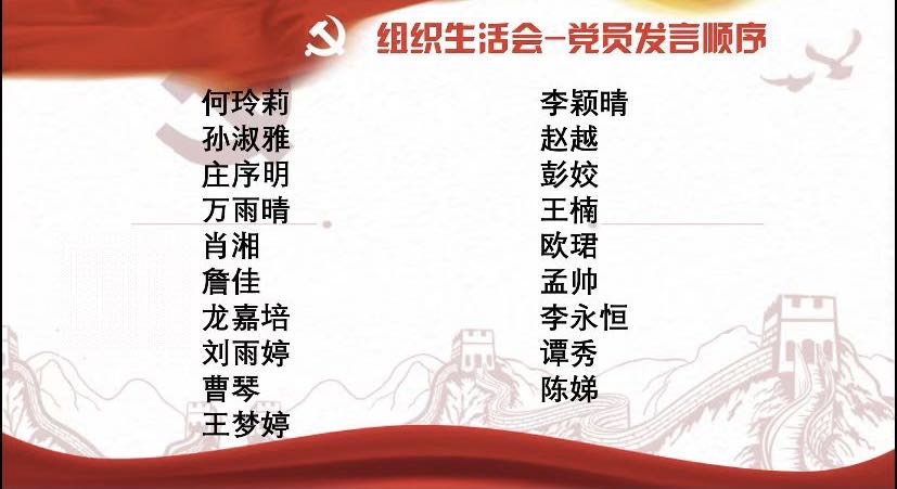 主持人孙淑雅宣布会议正式开始后,首先是庄序明同志对党支部自9月成立以来完成的工作和以及作中的不足之处进行了简要的总结,其次,包括书记在内的19名党员依次进行了批评和自我批评,着重指出了自己在学习工作和生活中的不足,开展自我批评,对自己提出了更为严格的要求,决心积极发挥党员先锋模范作用,也诚恳地指出了其他同志存在的不足,并希望以后能够互相指正,共同进步。