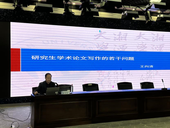 2024年10月29日下午14:30,湘潭大学马克思主义学院二级教授王向清应邀莅临我院,在伟德云塘校区文科楼B300报告厅就 “研究生学术论文写作的若干问题”开展了一场精彩的学术报告。本场报告由马克思主义学院副院长郭华主持,学院教师代表及研一、研二研究生参加。
