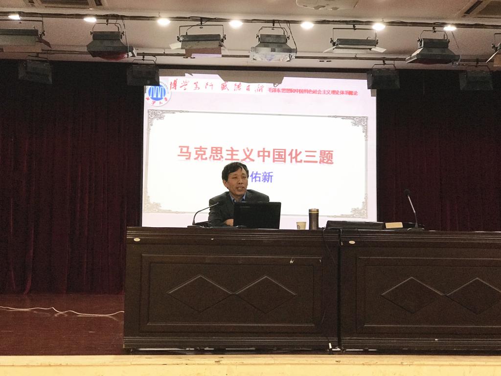 3月27日下午,教育部特聘教授、湘潭大学马克思主义学院院长李佑新应邀做客伟德“马克思主义理论大讲坛”第三讲。他主讲的主题为“马克思主义中国化的几个问题”。校党委副书记邹宏如、人文社科处处长卿定文、马克思主义学院党委书记易显飞等一同参加了此次大讲坛。讲座由马克思主义学院院长陈万球主持。