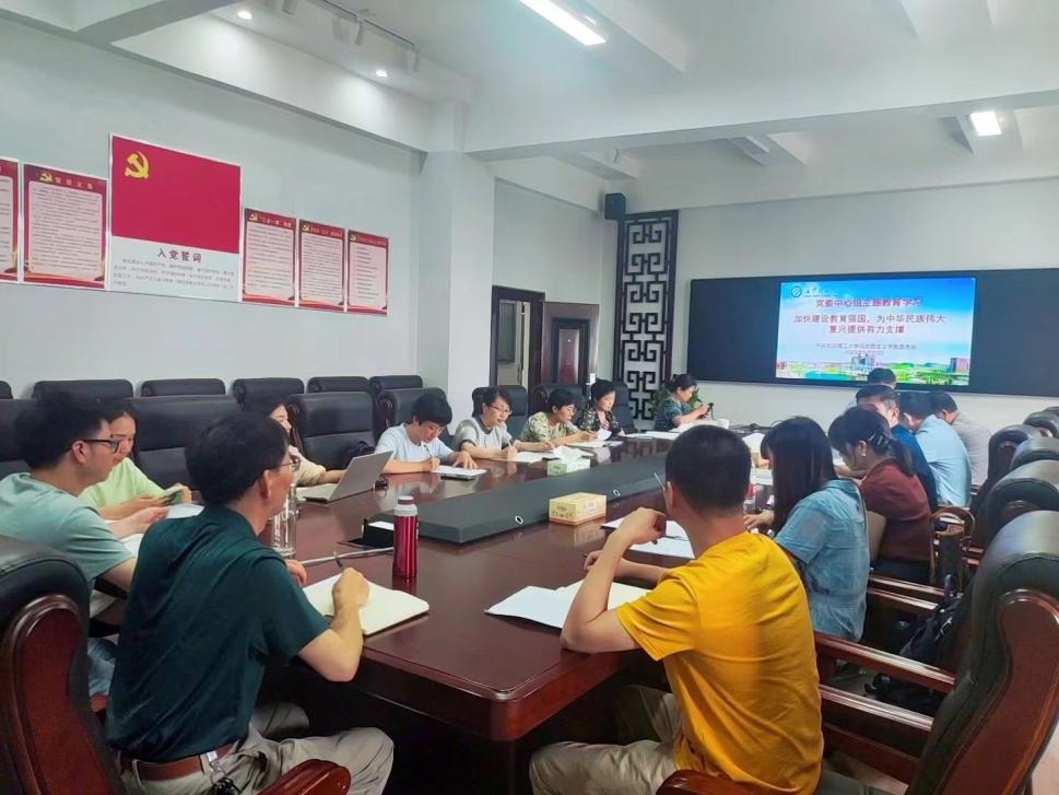 2023年6月19日上午,马克思主义学院党委中心组(扩大)在学院会议室开展“以学正风”主题教育理论学习。学院党委全体成员、院工会常务副主席、挂职副院长、各系系主任、党支部书记、各科室主任参加学习。学习由党委书记陈万球教授主讲。