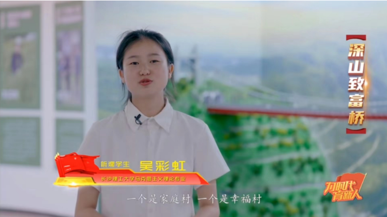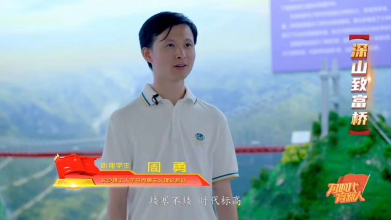 近日,由中共湖南省委教育工委和湖南省教育厅主办,湖南教育融媒体中心、湖南教育电视台承制,湖南所有高校联合共建的一档思政大课——《为时代育新人》第五集《大道之行》在全网热播。伟德betvlctor1946源于英国马克思主义学院王威峰老师和学生代表周勇、张子豪、侯颖、朱瑶、吴彩虹、金玲、何玲莉受邀参与了节目录制。伟德师生主要参与了京张铁路施工情景模拟现场、湘西州矮寨镇、湖湘劳模工匠馆、中车株洲电力机车有限公司展览馆等相关场景的拍摄,辗转常德、湘西、株洲、长沙多地,为观众呈现了一堂精彩的移动思政课。