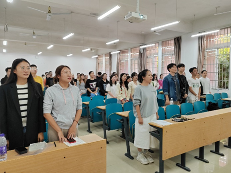 开班仪式第一项,全体学员在曾蓓老师的带领下起立,奏唱《国歌》和《国际歌》,接受心灵的洗礼,坚定对党的事业奋斗终身的决心。