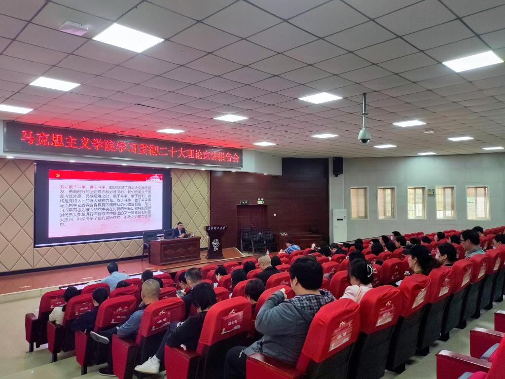 马克思主义学院将以学习贯彻党的二十大精神作为当前和今后一个时期的首要政治任务,并将开展榜样人物进课堂、演讲比赛、主题征文等系列活动,推动党的二十大精神落实到学习、工作等各项任务中去,以更加昂扬的精神状态,踔厉奋发、勇毅前行,奋力推动学院实现高质量发展。