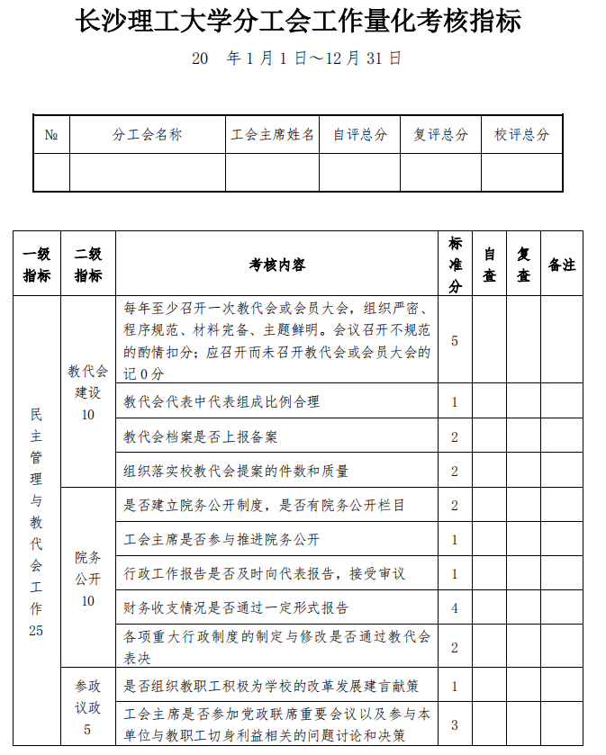 分工会工作量化考核的结果将作为评选优秀分工会的重要 依据。