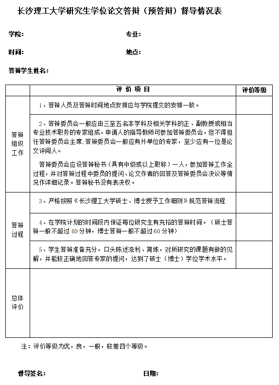 研究生学位论文答辩督导情况表(督导专家用)