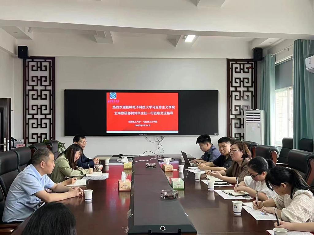 4月14日上午10点,桂林电子科技大学马克思主义学院北海教研部贺伟华主任一行6人来我院调研交流,本次交流会由马克思主义学院副院长郭华主持,学院教授委员会余乃忠主任、学院教学督导团邹新树副团长、赖某深教授、平伟军主任以及银星老师等参加了会议。