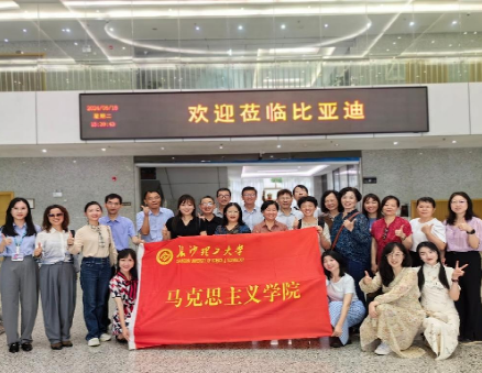 为深入推动思政课改革创新,加强思政小课堂与社会大课堂的有效结合,推进大思政课建设,6月18日下午,马克思主义学院组织教职工赴长沙市比亚迪汽车有限公司开展主题党日活动暨工会活动。学院党委书记陈万球、副院长兼院工会主席郭华、副院长钟芙蓉、文贵全、院工会副主席邹新树参加了活动。