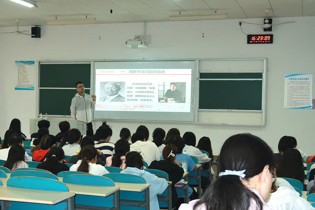 2024年11月15日下午16:00,马克思主义学院邀请东北师范大学马克思主义学院罗湘衡副教授走进《中国近现代史纲要》课堂,于综合教学楼B104教室主讲了题为《新中国的立国之战—抗美援朝战争》的通识教育讲座。罗湘衡副教授主要从事思想政治教育、政治学理论研究,是全国思政课展示竞赛一等奖获得者。