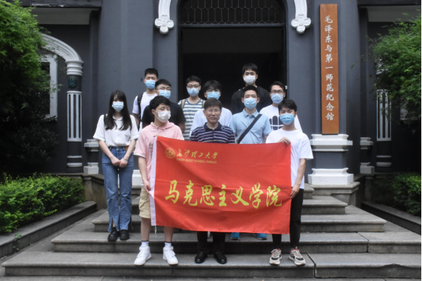 本次实践教学活动的第二个环节是重点参观毛泽东与第一师范纪念馆,了解一代伟人是怎样从这里起步的。在纪念馆第三展厅,看到毛泽东与杨昌济、毛泽东与《新青年》、毛泽东的《体育之研究》的图片,同学们感受到一百多年前新文化运动在第一师范校内引起的思想解放潮流。在第五展厅,毛泽东领导湖南自治运动、领导参与成立文化书社和俄罗斯研究会等共产党地方早期组织、直至参加中国共产党第一次全国代表大会,展示了马克思主义是如何在一件件历史事迹的推动下,在中国大地上广泛传播开来的。