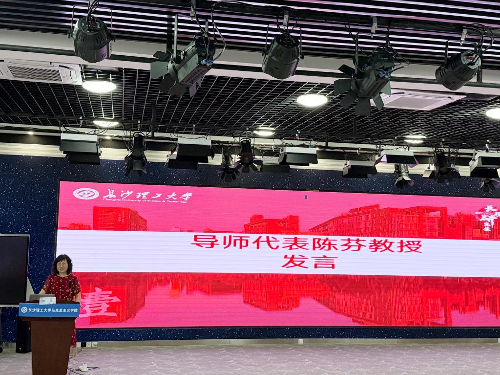随后,导师代表陈芬教授发言。她提出毕业是辉煌的里程碑,更是充满未知挑战的新起点。她通过分享一个毕业生跌宕起伏的求职经历,强调关于未来发展的几点思考:第一,职业操守和规则意识是职业生涯不可逾越的生命线;第二,将低谷转化为反思沉淀和再次出发的契机,是贯穿一生的必修课;第三,坚持锻炼、身心健康是最大的财富。