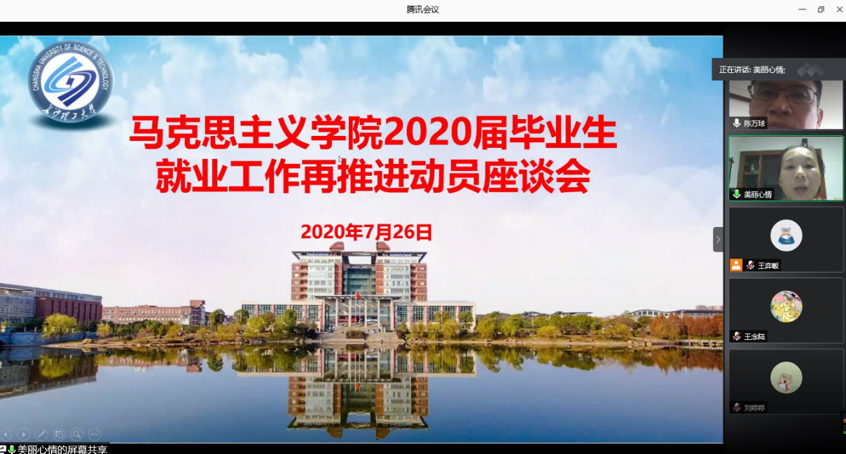 2020年7月26日下午3点,马克思主义学院通过腾讯会议召开了2020届毕业生就业工作再推进动员座谈会。此次会议由辅导员曾蓓老师主持,陈万球院长、易显飞书记和全体未就业毕业生及导师参加。