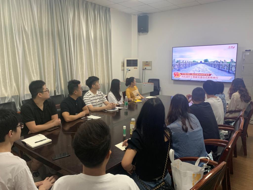 2020年9月3日,马克思主义学院2018级研究生党支部在金盆岭校区四教503教室组织观看了纪念中国人民抗日战争暨世界反法西斯战争胜利75周年活动直播,本次活动由马克思主义学院2018级研究生党支部书记沈康主持,全体在校党员参加。