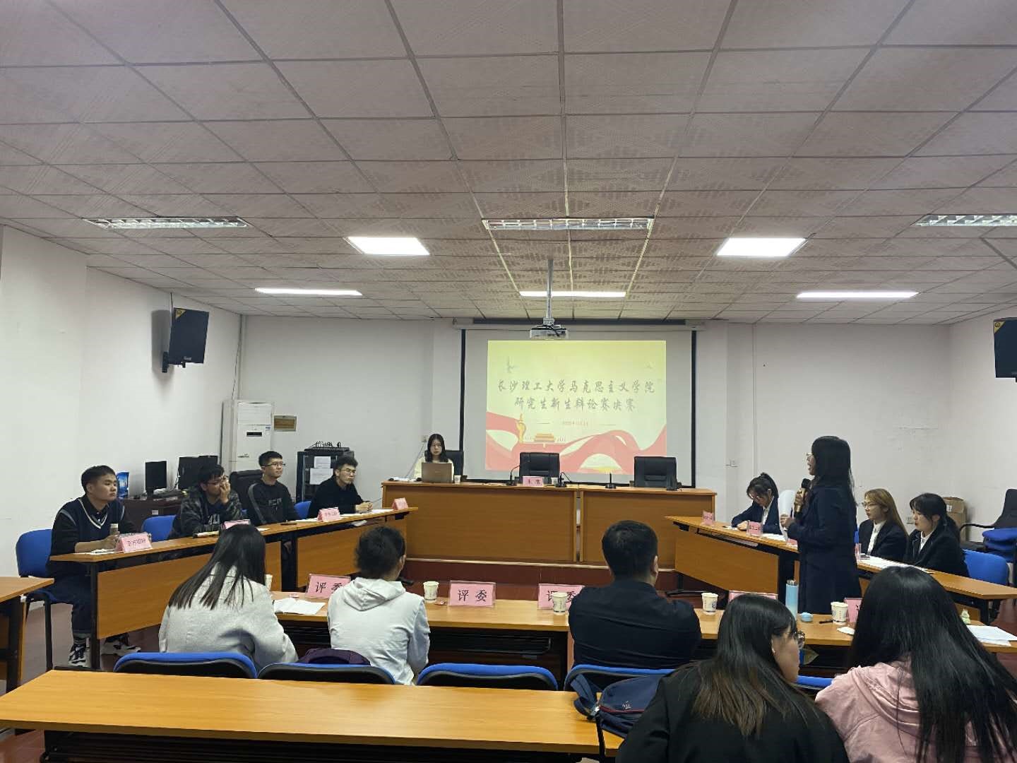 11月3日晚七点,马克思主义学院在金盆岭校区2教101会议室举行了2020年“思辨人生”新生辩论赛决赛。本轮辩论赛由院研究生会主席魏俊松主持,校研究生院副院长兼研工部部长田上、马克思主义学院副院长李雨燕、哲学系主任郭华、哲学系副主任廖苗和研究生辅导员曾蓓担任评委,我院2020级全体研究生参加。