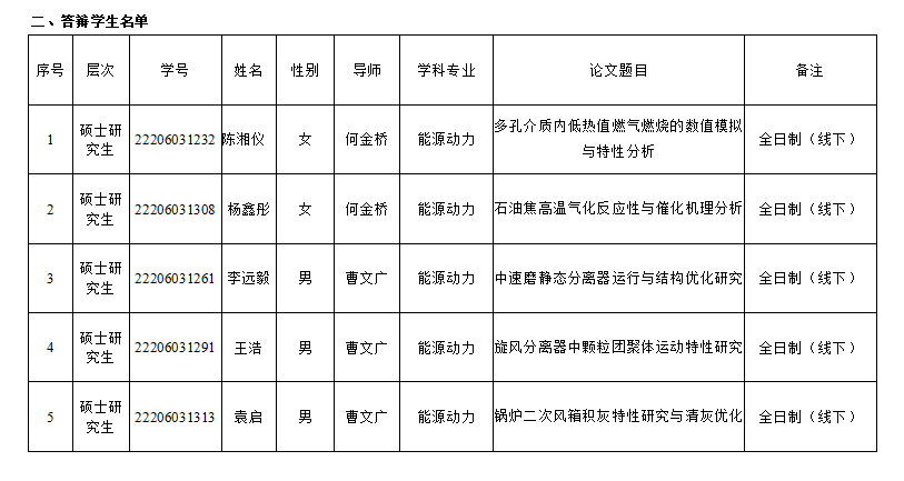 2025年能源与动力工程学院研究生学位论文答辩安排(第十五组)