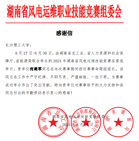 8月27-30日,湖南省风电运维职业技能竞赛在娄底举行。来自五凌电力、大唐华银、中国华能、国家能源、中国华电、中广核、湖南能源、中车、三一等14家单位组织的26支队伍、52名选手参加竞赛,角逐省级电力行业风力发电运维领域个人、团体技能荣誉。竞赛由湖南省总工会、省人力资源和社会保障厅、省能源局联合主办,省煤炭(能源化学)工会、五凌电力有限公司承办。