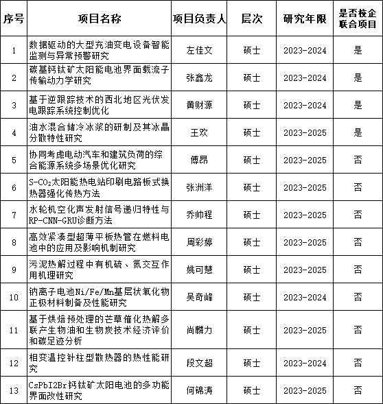 根据湖南省教育厅湘教通〔2023〕68号《关于申报2023年湖南省研究生科研创新项目的通知》及《伟德betvlctor1946源于英国研究生创新工程管理暂行办法》([2020]28)文件的精神,经个人申报,学院组织专家评审,拟推荐“数据驱动的大型充油变电设备智能检测与异常预警研究”等13项省级研究生科研创新项目和“新型复合熔盐相变储热体系的优化设计及应用研究”等7项校级研究生科研创新项目参加学校评审。具体名单如下: