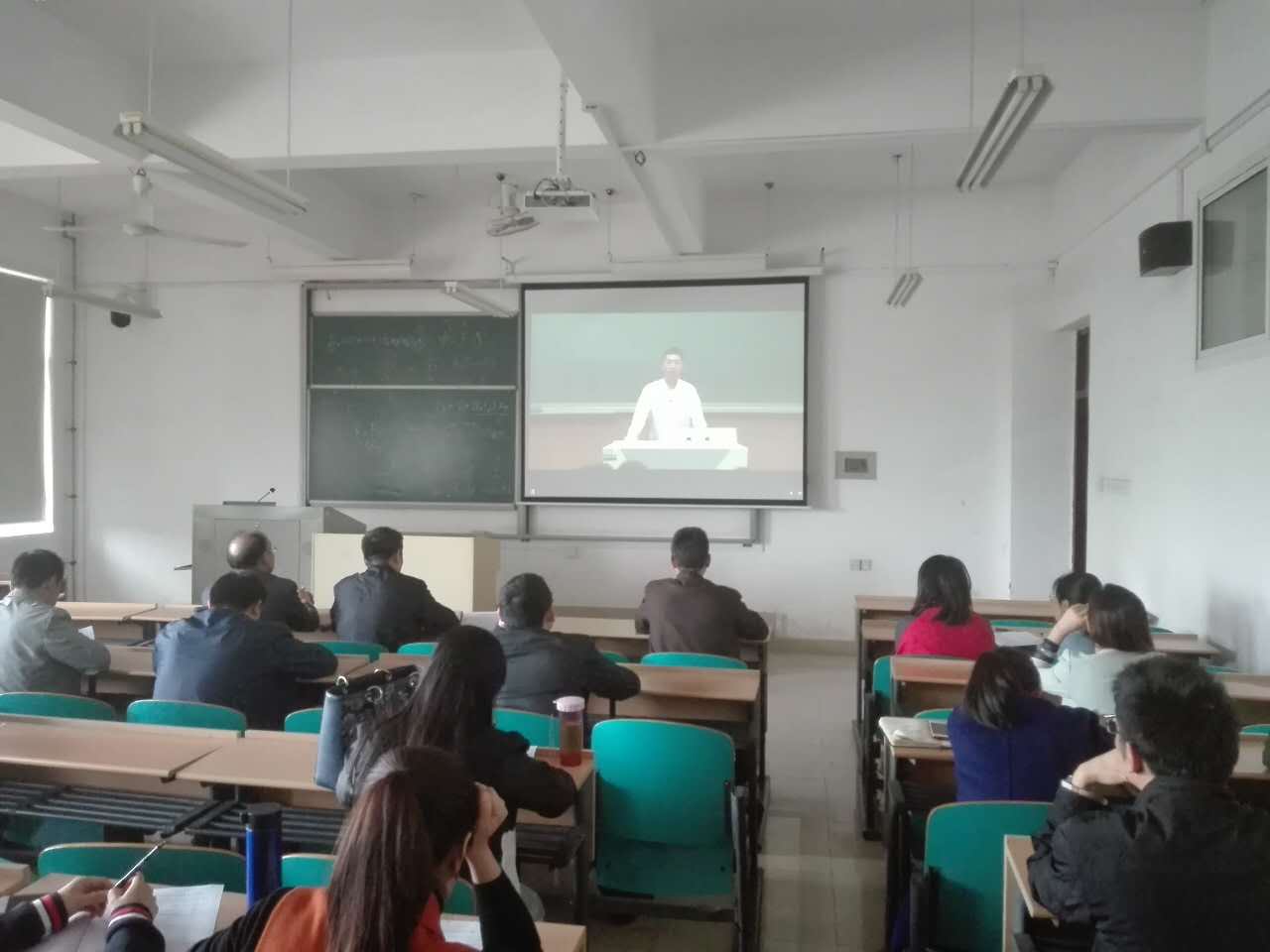 2018年4月24日下午14:30,能动学院组织全院老师在云工一A-215观看网络直播,