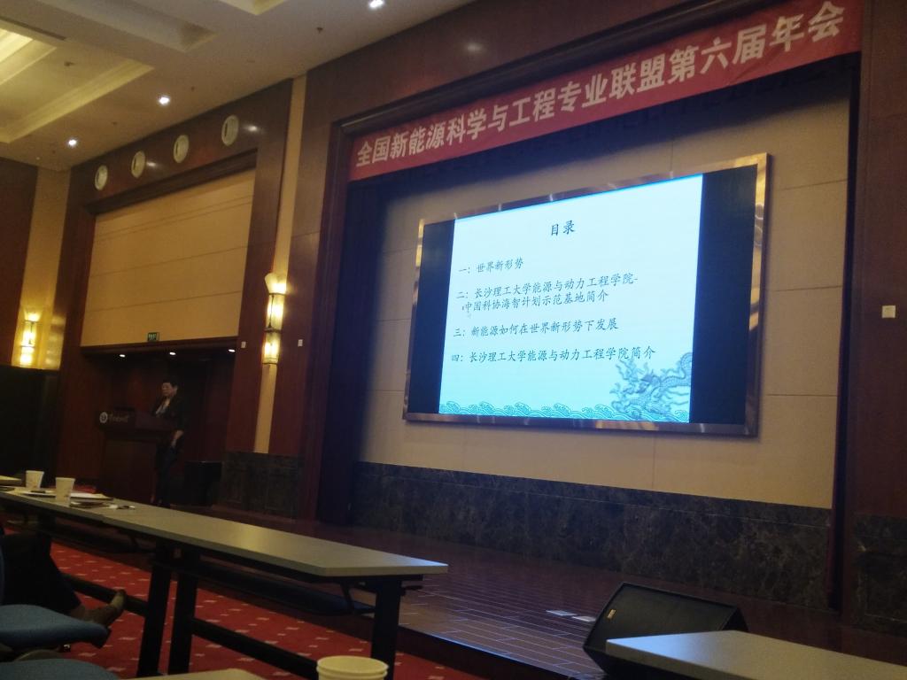 在新能源科学与工程专业联盟换届会议上陈荐院长当选为常务理事。向健平教授做了题为“关于新能源如何在世界新形势下发展的思考”报告。