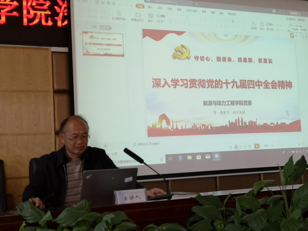 党的十九届四中全会是在新中国成立70周年之际,在“两个一百年”奋斗目标历史交汇点上,召开的一次具有开创性、里程碑意义的重要会议。根据学校党委要求,能动学院党委以高度的政治责任感和使命感,将深入学习贯彻党的十九届四中全会精神作为一项重大的政治任务,精心组织,周密部署,系统安排,形成了良好的舆论导向。