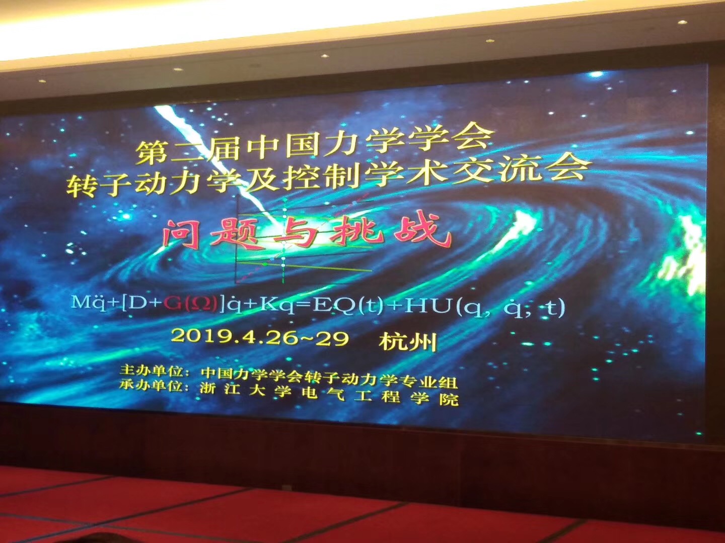 “第二届中国力学学会转子动力学与控制学术交流会”于2019年4月26-28日在杭州举行,来自全国高校、科研单位及相关企业共210余名代表出席会议,我院李志鹏教授参加了会议,会议由中国力学学会动力学与控制专委会转子动力学专业组主办,浙江大学祝长生教授研究团队承办。