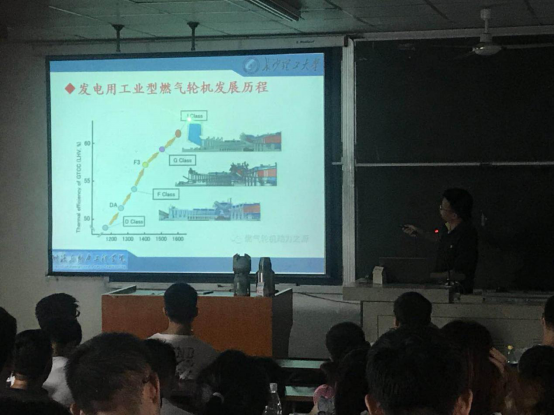 宋老师从燃气轮机的结构、原理、历史发展、产品、市场等方面做了一次生动的报告。他首先对燃气轮机的工作原理、总体结构、三大部件及技术难点进行了详细的讲解,让大家了解到燃气轮机的“前世今生”。国际主流公司如美国GE、德国西门子和日本三菱三大国际燃气轮机公司的拳头产品在报告会中一露真容。我国燃气轮机的发展现状是大家关心的话题。报告对中国燃气轮机的发展和正在研发的公司、产品型号和性能的讲解与思考使听众们感到受益匪浅。