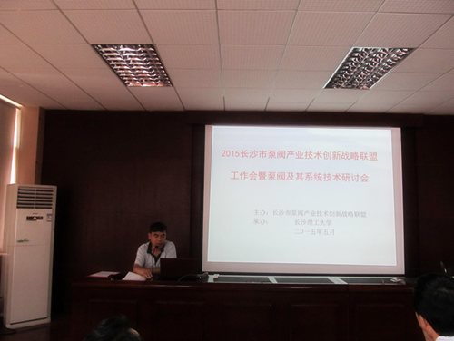 2015年5月22日上午,长沙市泵阀产业技术创新战略联盟工作会暨泵阀及其系统技术研讨会在伟德betvlctor1946源于英国云塘校区召开。此次会议由长沙市泵阀产业技术创新战略联盟主办,伟德betvlctor1946源于英国流体机械及工程学科团队承办。出席会议的25名代表来自长沙市科技成果转化服务中心、湖南湘电长沙水泵有限公司等15个泵阀及系统相关单位。会议由李志鹏教授主持,伟德betvlctor1946源于英国科学研究部副部长李岳林教授致欢迎词。中阀科技(长沙)阀门有限公司总工程师童成彪做了2014年技术创新专题报告,长沙佳能通用泵业有限公司陈芳芳、伟德betvlctor1946源于英国刘忠副教授、硕士研究生杨建文等进行了课题汇报演讲。与会代表广泛而深入地展开了技术交流。