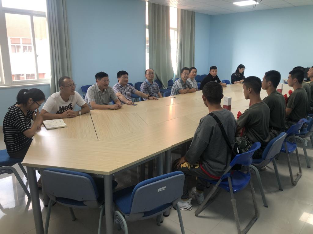 9月5日下午,能动学院于新能源2号大楼503举办退伍老兵与入伍新兵座谈会,参加座谈会的有学院党委书记陈冬林,学院院长陈荐,学院党委副书记、副院长杨雪峰,副院长何建军,院党委组织员王汉华,学工办全体老师,两位退伍老兵与五位入伍新兵。