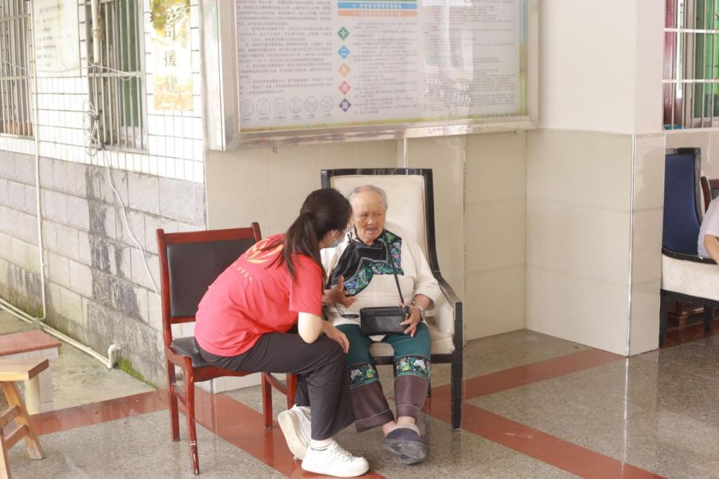 队员们的到来使原本安静的福利院热闹了起来,老人们向大家细细讲述着他们的故事,有的老人的丈夫年轻时因剿匪逝世,有的老人独自抚育三个儿女成家立业……当队员周丹坐到一位苗族奶奶旁边时,虽语言不通,但老人为了表达对队员的欢迎,用苗语轻声哼唱着一首首红歌。队员袁宛伊说道:“当我看到一位年近八十岁的奶奶独自绣花,听到另一位奶奶唱着毛主席的语录歌时,我不禁潸然泪下,并下决心要成为一个对社会有用的人!”